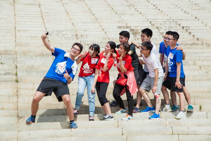 賽中的團(tuán)結(jié)友愛。紅藍(lán)相間,在大自然的呼應(yīng)下,儼然一道美麗的風(fēng)景線。在往返路程長達(dá)9公里的路程上,兩面環(huán)山,賽道上面,以小組為單位的團(tuán)體一組一組的奔跑著,小組里的男生護(hù)著女生,體力好些的帶著體力差點(diǎn)的,相互關(guān)心著,路上遇到其他慢些的隊(duì)友,都會喊聲加油,那是一種力量,鼓舞大家前行的力量。座山上,處處回蕩著笑聲,處處回蕩著友愛,疲憊與勞累都已被拋之腦后,大家都想一鼓作氣,共同前行,共同進(jìn)步。一路上,團(tuán)結(jié)友愛的種子就在比賽中慢慢生根發(fā)芽了。