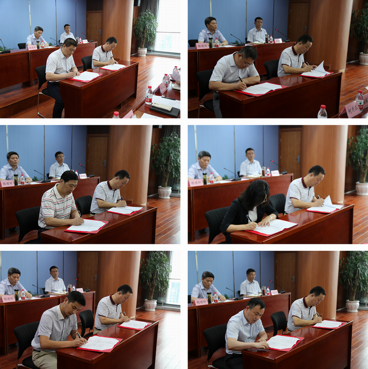 湖北公司執(zhí)行總經(jīng)理許金華依次與分管副總、技術(shù)部和財務部部門經(jīng)理簽訂了《湖北公司2016年度全員經(jīng)營任務指標責任狀》、《經(jīng)營班子成員年度經(jīng)營目標責任書》及《部門年度目標考核責任書》。