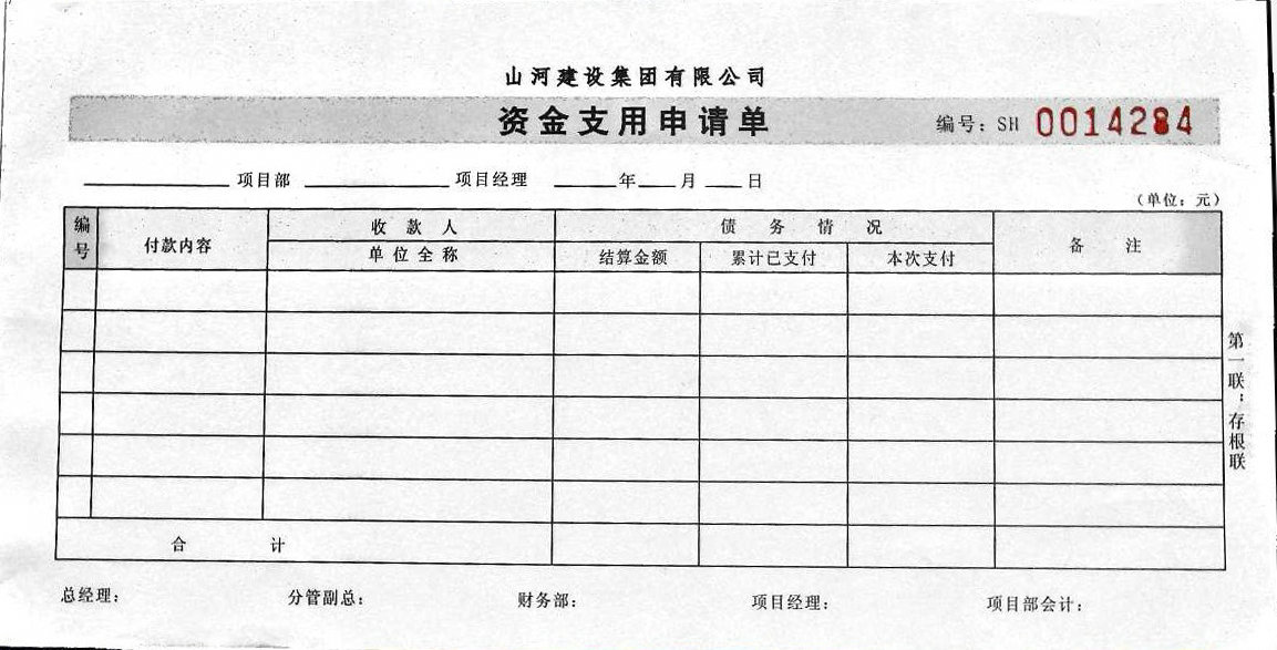 4、根據(jù)資金計劃,分單位填制資金支用單,項目部財務(wù)人員對該過程把好關(guān),即做好“六不支付”------不開收據(jù)不付款、沒有結(jié)算或結(jié)算不夠不付款、發(fā)票不夠不付款(或預(yù)留相關(guān)稅金)、委托支付不付款、簽字手續(xù)不齊不付款、沒有尾款承諾的不付款。