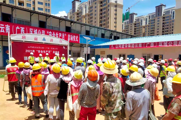5月29日,山河集團(tuán)正式啟動2021年“安全生產(chǎn)月”活動。云南(廣西)公司迅速響應(yīng),于當(dāng)日下午在昆明龍四地塊城市棚戶區(qū)改造項目施工現(xiàn)場舉行了2021年“安全生產(chǎn)月”活動啟動儀式。公司副總經(jīng)理劉火焱、秦大順,工程團(tuán)隊全體人員,各項目部代表等150余人參加了啟動儀式。