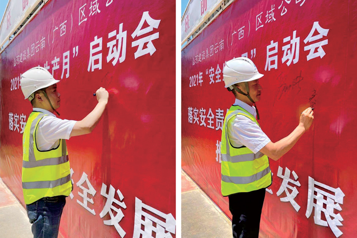 啟動儀式上,全體人員莊嚴(yán)宣誓,大聲說出“告別違章從我做起”的誓詞,一字一句鏗鏘有力,表達(dá)了抓好安全生產(chǎn)的信心和決心。隨后,大家在啟動儀式背景墻上簽名,承諾切實履行安全生產(chǎn)主體責(zé)任,把責(zé)任記在心上,扛在肩上,落實在行動上。