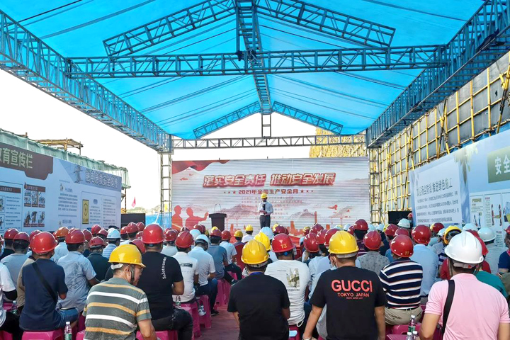 6月23日上午,??谑旋埲A區(qū)2021年度住建領(lǐng)域“安全生產(chǎn)月”演練活動在山河建設(shè)集團(tuán)海南公司承建的昌榮星城項(xiàng)目施工現(xiàn)場舉行。