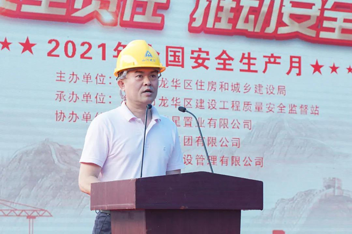 活動伊始,海南公司副總經(jīng)理李發(fā)生作為企業(yè)代表發(fā)言。他對山河集團(tuán)、海南公司及昌榮星城項(xiàng)目的情況進(jìn)行了介紹,分享了集團(tuán)安全管理工作的做法和經(jīng)驗(yàn),并承諾公司將牢固樹立安全發(fā)展理念,堅(jiān)決筑牢安全生產(chǎn)防線,確保項(xiàng)目建設(shè)穩(wěn)步推進(jìn)。