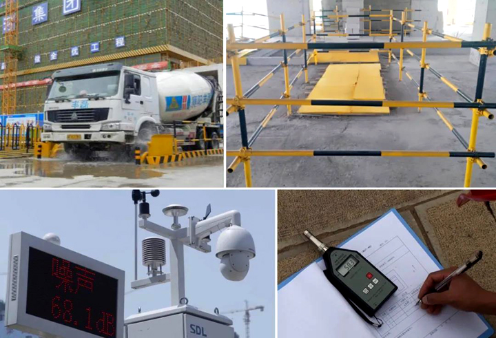 在確保質(zhì)量、安全的前提下,項(xiàng)目部遵循國家有關(guān)建設(shè)工程節(jié)能減排和綠色施工的相關(guān)要求,認(rèn)真貫徹執(zhí)行《綠色施工導(dǎo)則》《綠色建造施工水平評價(jià)指標(biāo)》,從施工管理、環(huán)境保護(hù)、節(jié)材與材料資源利用、節(jié)水與水資源利用、節(jié)能與能源利用和節(jié)地與土地資源保護(hù)、人力資源節(jié)約與保護(hù)、技術(shù)創(chuàng)新與創(chuàng)效等方面采取了一系列措施,最大限度地節(jié)約資源、減少能源消耗,實(shí)現(xiàn)了經(jīng)濟(jì)效益、社會效益和環(huán)境效益的統(tǒng)一。