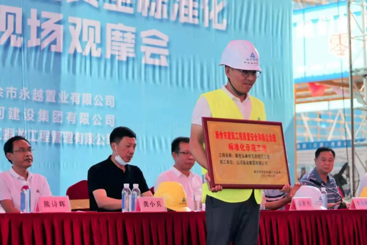 7月29日,新余市2021年建設(shè)工程質(zhì)量安全標(biāo)準(zhǔn)化暨揚(yáng)塵治理示范工地現(xiàn)場觀摩會(huì)在山河建設(shè)集團(tuán)江西公司承建的聯(lián)發(fā)永康狀元府項(xiàng)目舉行。新余市住建局副局長龔小兵、市建管局局長何祝生、市質(zhì)監(jiān)站站長龔宇新等領(lǐng)導(dǎo)出席活動(dòng),建設(shè)單位、監(jiān)理單位及新余市在建項(xiàng)目代表等400余人參加活動(dòng)。