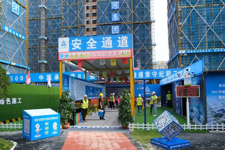 隨后,與會(huì)代表前往安全體驗(yàn)區(qū)、工法樣板區(qū)、主體樓棟、實(shí)測(cè)實(shí)量展示區(qū)、安全管理展示區(qū)、施工機(jī)具展示區(qū)進(jìn)行參觀,對(duì)施工現(xiàn)場的安全文明標(biāo)準(zhǔn)化建設(shè)、基坑防護(hù)欄、噴淋降塵系統(tǒng)等措施給予了充分肯定。