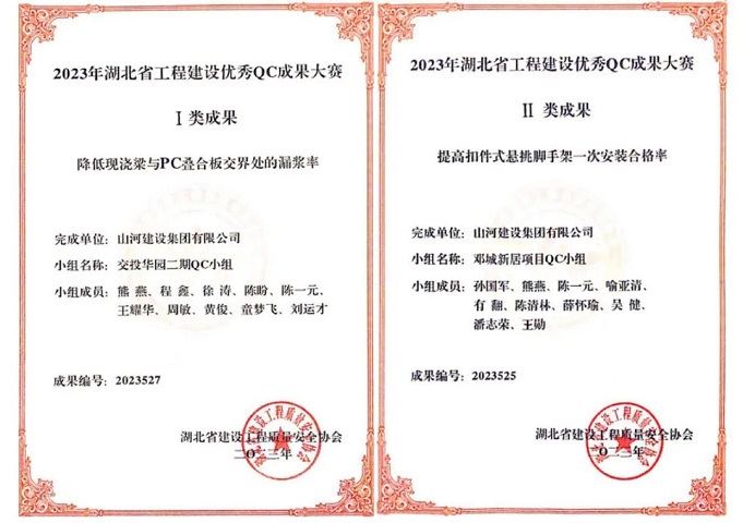 山河集團兩項QC成果獲評2023年湖北省工程建設優(yōu)秀成果