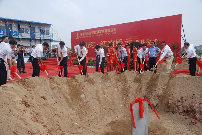 2013年9月8日上午,丹桂飄香,彩旗飄揚(yáng),在熱鬧歡騰的隆隆禮炮聲中,由山河集團(tuán)總投資8億元打造的湖南茶陵“山河•江南熙元”項(xiàng)目,在茶陵縣江防護(hù)堤下瑤段舉行開工奠基儀式。
