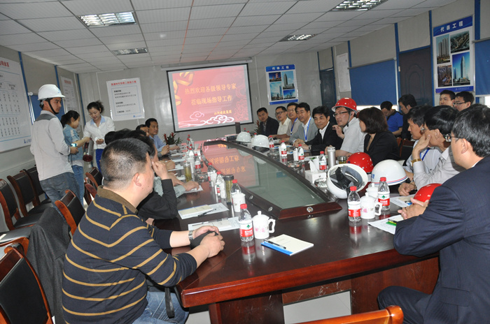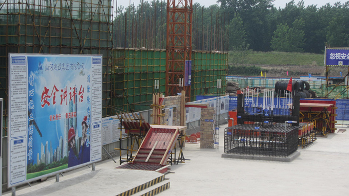 聽取了項目部關于創(chuàng)建質量標準化過程的專項匯報后,調研組隨后觀看了現(xiàn)場樣品庫、實物樣板展示區(qū)、鋼筋加工區(qū),并到項目16#樓進行了實體檢查調研。穎東區(qū)質量監(jiān)督分局許局長針對現(xiàn)場質量控制和保護措施進行了講解,調研組對項目部采用的一些新的控制質量的工藝和成品保護措施,表示認可和贊同,并對一些防治質量通病的控制措施進行了指導。調研組專家一行對現(xiàn)場實體質量較為滿意,本次檢查調研開展順利。
