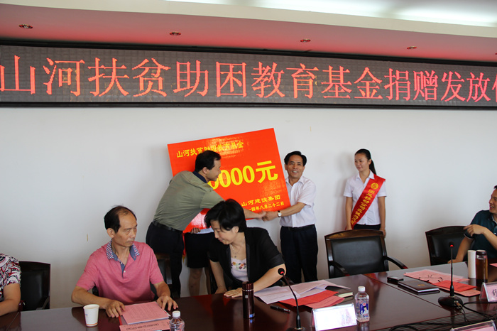 8月22日上午,2014年“山河集團(tuán)扶貧助困教育基金”捐贈發(fā)放儀式在團(tuán)風(fēng)縣政府七樓會議室舉行,集團(tuán)公司黨委書記舒先厚及部分項(xiàng)目經(jīng)理代表等參加活動。團(tuán)風(fēng)縣“四大家”領(lǐng)導(dǎo)、縣教育局領(lǐng)導(dǎo)、受助學(xué)生代表出席儀式。