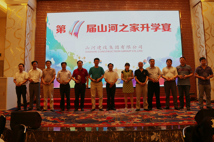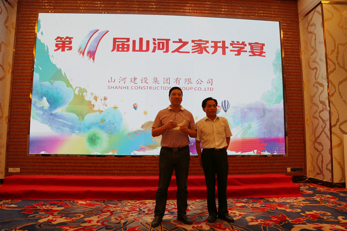 山河集團每年都會定期舉辦學(xué)子宴和捐資助學(xué)活動,山河人無私助學(xué)的善舉給千千萬萬個寒門學(xué)子照亮了求學(xué)之路,也給他們的家庭帶來了希望和改變。為表彰在2014年第九屆捐資助學(xué)活動中的優(yōu)秀代表,升學(xué)宴的第一個環(huán)節(jié)就是由集團公司黨委書記舒先厚向19位項目經(jīng)理頒發(fā)“慈善之星”的獎杯,同時授予湖北公司、新疆公司先進單位的榮譽稱號。
