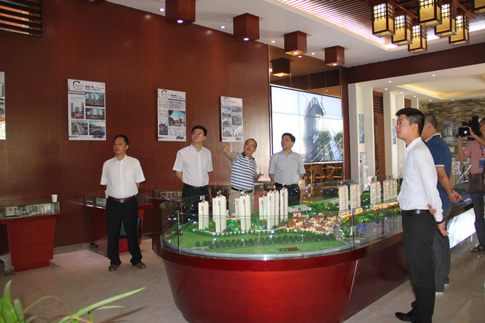 程董事長及董事長助理、投資事業(yè)部總經(jīng)理姚偉一行在湖南公司總經(jīng)理林江的陪同下首先來到了位于犀城廣場東北角的“江南熙元”售樓部。在仔細(xì)詢問了一期項(xiàng)目的產(chǎn)品類別及銷售進(jìn)度等情況后,董事長指出,在縣級城市開發(fā)樓盤一定要結(jié)合當(dāng)?shù)貙?shí)情,為客戶提供滿意的產(chǎn)品,同時(shí)樹立行業(yè)的標(biāo)桿。