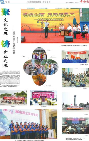 2014年10月28日――11月12日,黃岡日報(bào)連續(xù)刊登了“山河榜樣”透視、“山河觀察”、“山河感悟”等系列報(bào)道及圖片專版,對山河集團(tuán)的發(fā)展軌跡進(jìn)行了梳理,展示了集團(tuán)的閃光足跡和輝煌成就。