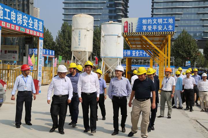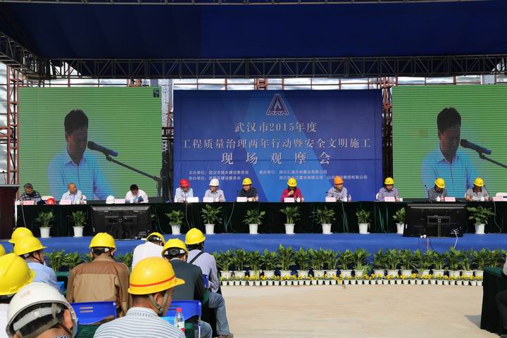 2015年10月22日上午,武漢市2015年度工程質(zhì)量治理兩年行動(dòng)暨安全文明施工現(xiàn)場(chǎng)觀摩會(huì)在山河集團(tuán)湖北公司匯通新長(zhǎng)江中心項(xiàng)目召開。湖北省質(zhì)安總站副站長(zhǎng)周偉,武漢市稽查站總工程師曹立新、質(zhì)檢站處長(zhǎng)李華、安全站副站長(zhǎng)熊威,武昌區(qū)文明辦主任肖永高、安監(jiān)局局長(zhǎng)何學(xué)軍、建委書記周旗福、建委副局長(zhǎng)王水泉、建委副主任山峰,湖北新長(zhǎng)江置業(yè)有限公司董事長(zhǎng)陳學(xué)明,北京縱橫監(jiān)理有限公司副總經(jīng)理張忠,山河集團(tuán)董事長(zhǎng)程理財(cái)、副總經(jīng)理程秋明、湖北公司常務(wù)副總經(jīng)理柯為正、副總經(jīng)理羅定軍等領(lǐng)導(dǎo)參加了會(huì)議。武漢市建管辦楊凡主任主持會(huì)議。