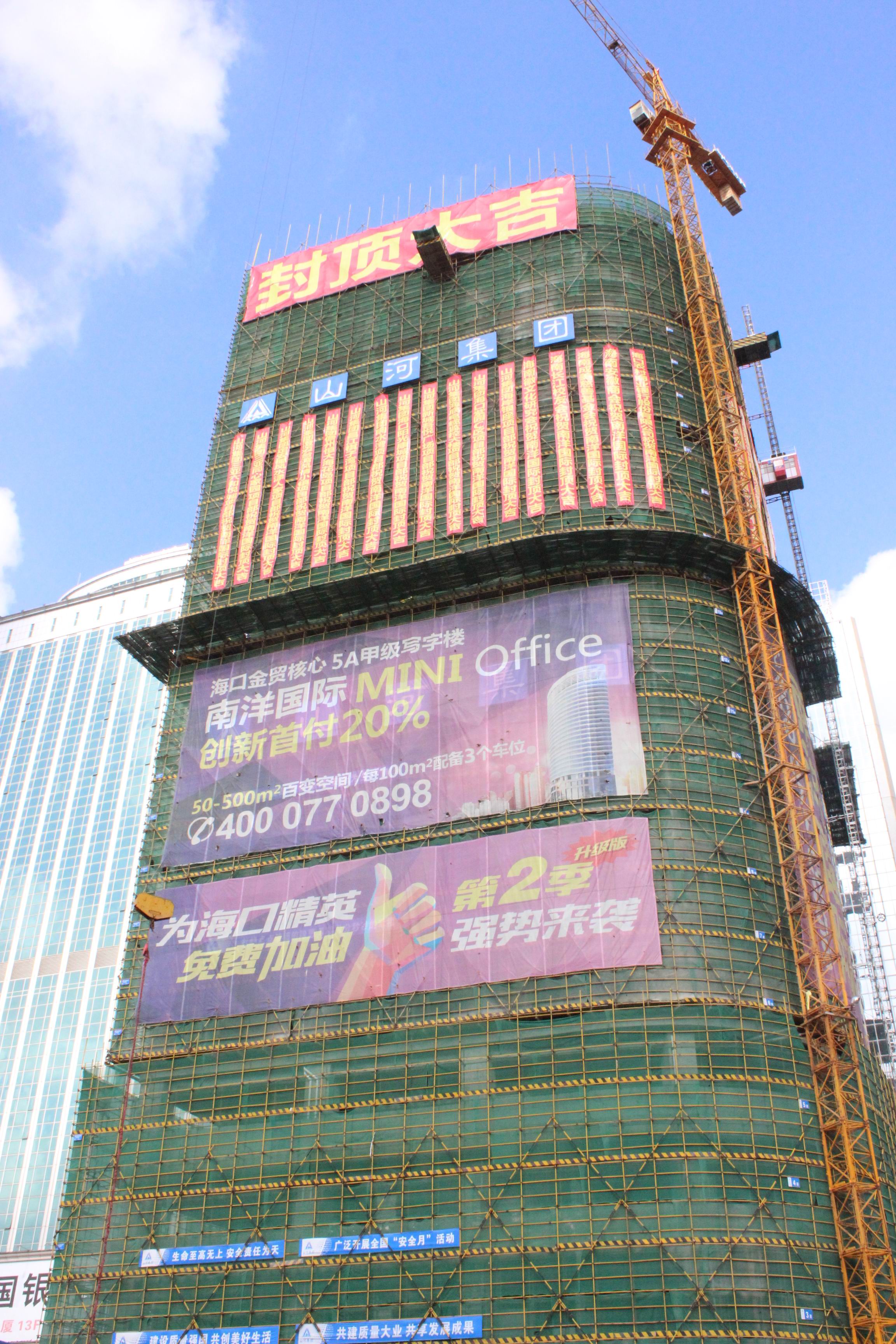 10月30日,由山河集團(tuán)海南公司承建的南洋國際項目舉行了簡單的封頂儀式,項目參建各方代表、山河集團(tuán)海南公司相關(guān)領(lǐng)導(dǎo)、各項目部的項目經(jīng)理等100余人參加了封頂儀式。