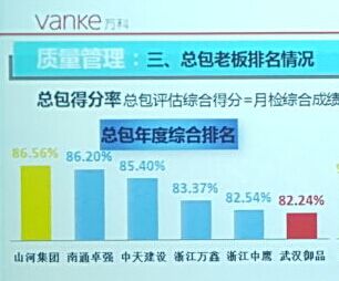 會(huì)上,南昌萬(wàn)科公司依據(jù)月檢及季檢中質(zhì)量、安全、實(shí)測(cè)實(shí)量等指標(biāo),對(duì)2015年各項(xiàng)目總包進(jìn)行統(tǒng)計(jì)排名。經(jīng)過(guò)評(píng)比,山河集團(tuán)以優(yōu)異的成績(jī)?cè)谀喜f(wàn)科眾多總包中排名第一,再次獲評(píng)“南昌萬(wàn)科最佳總包”。