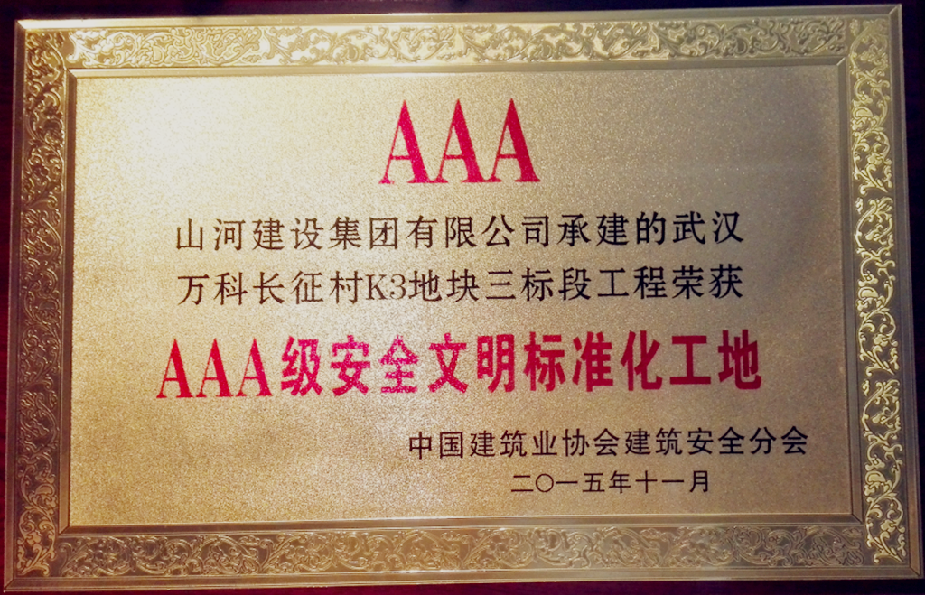 山河集團萬科長征村K3地塊項目榮獲全國“AAA級安全文明標準工地”稱號