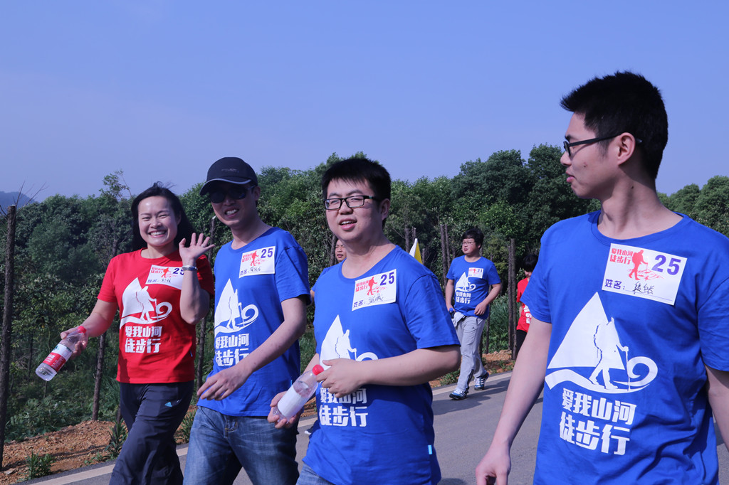 4月29日早上8點(diǎn),參加徒步行友誼賽的200名選手按照準(zhǔn)備好的方陣拍攝了公司LOGO,并集體合影。然后董事長作了簡(jiǎn)單的講話后,隨著一聲槍響,我們開始了“愛我山河徒步行”比賽。