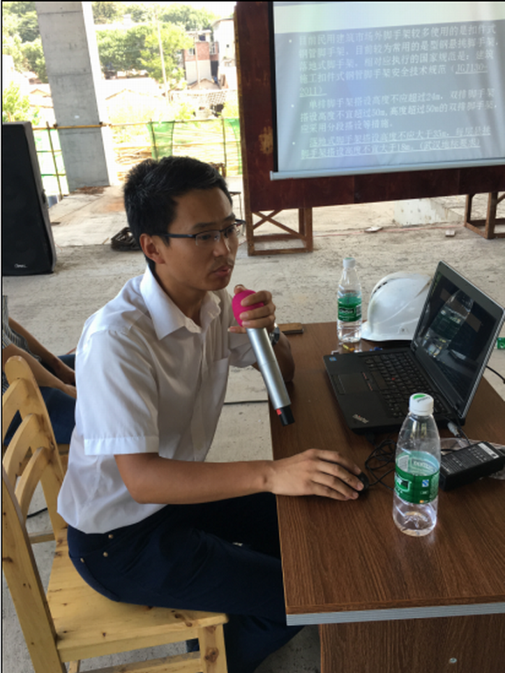 最后,湖北公司安全部主管楊根源就當(dāng)前各個項目的外架搭設(shè)情況進(jìn)行了匯報,并重點分析了外架搭設(shè)中存在的通病以及腳手架的搭設(shè)和安全防護(hù)措施。