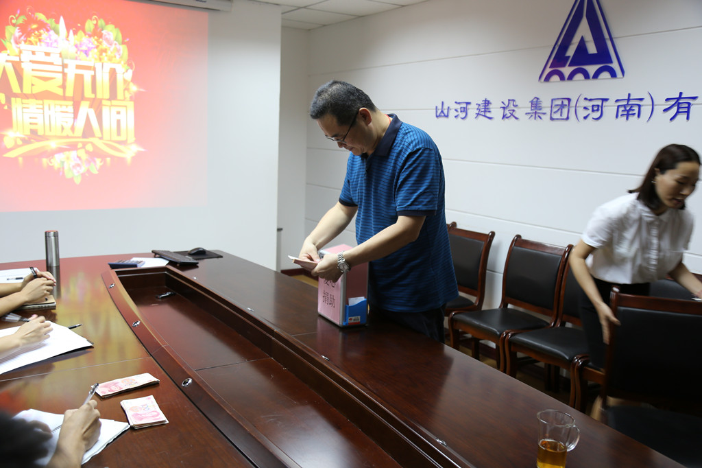2016年7月,山河集團工會發(fā)出倡議后,河南公司積極響應(yīng)號召,各項目部紛紛踴躍捐款。