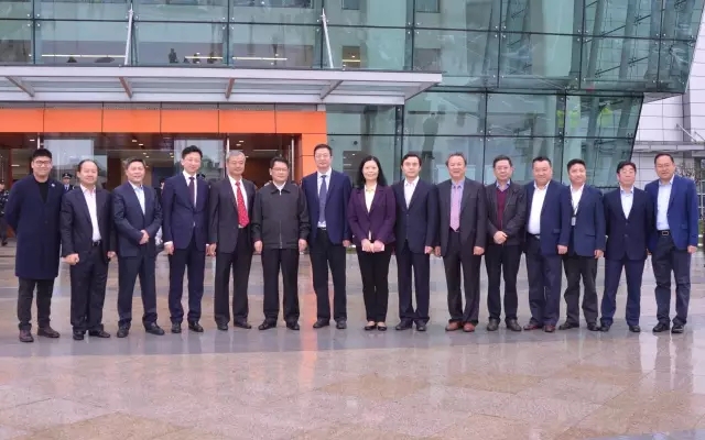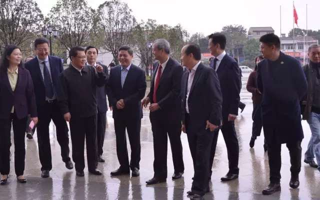 湖北省副省長任振鶴(左三)與程理財董事長(左五)親切交流
