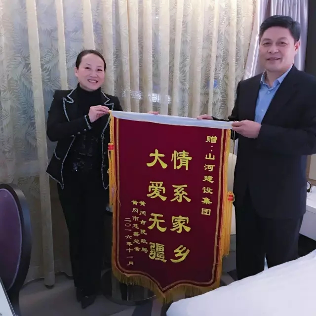 會后,黃岡市民政局局長石巧珍向程理財轉(zhuǎn)交市委市政府的感謝信,并代表民政局及市慈善總會向山河集團贈送榮譽錦旗一面,感謝山河集團在今年黃岡遭受嚴(yán)重洪澇災(zāi)害時作出的無私奉獻(xiàn)。