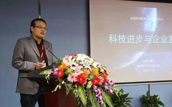 武漢虹識技術有限公司董事長、商會副會長易開軍作了《科技進步與企業(yè)發(fā)展》的主題分享,闡述了人與物、人與場景和人與設施的關系,展示了科技是永無止境的永恒之謎。他巧妙地講述了企業(yè)要如何運用科技、掌握科技、感受科技力量之魅力。