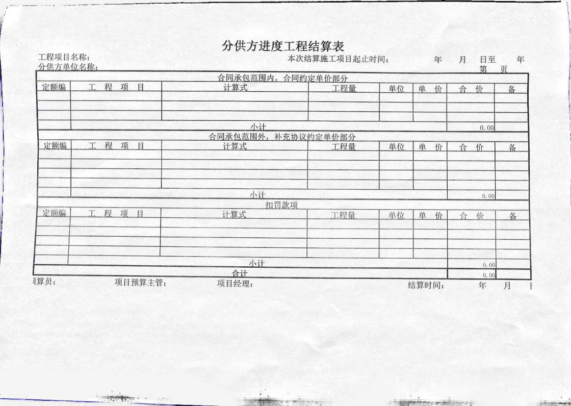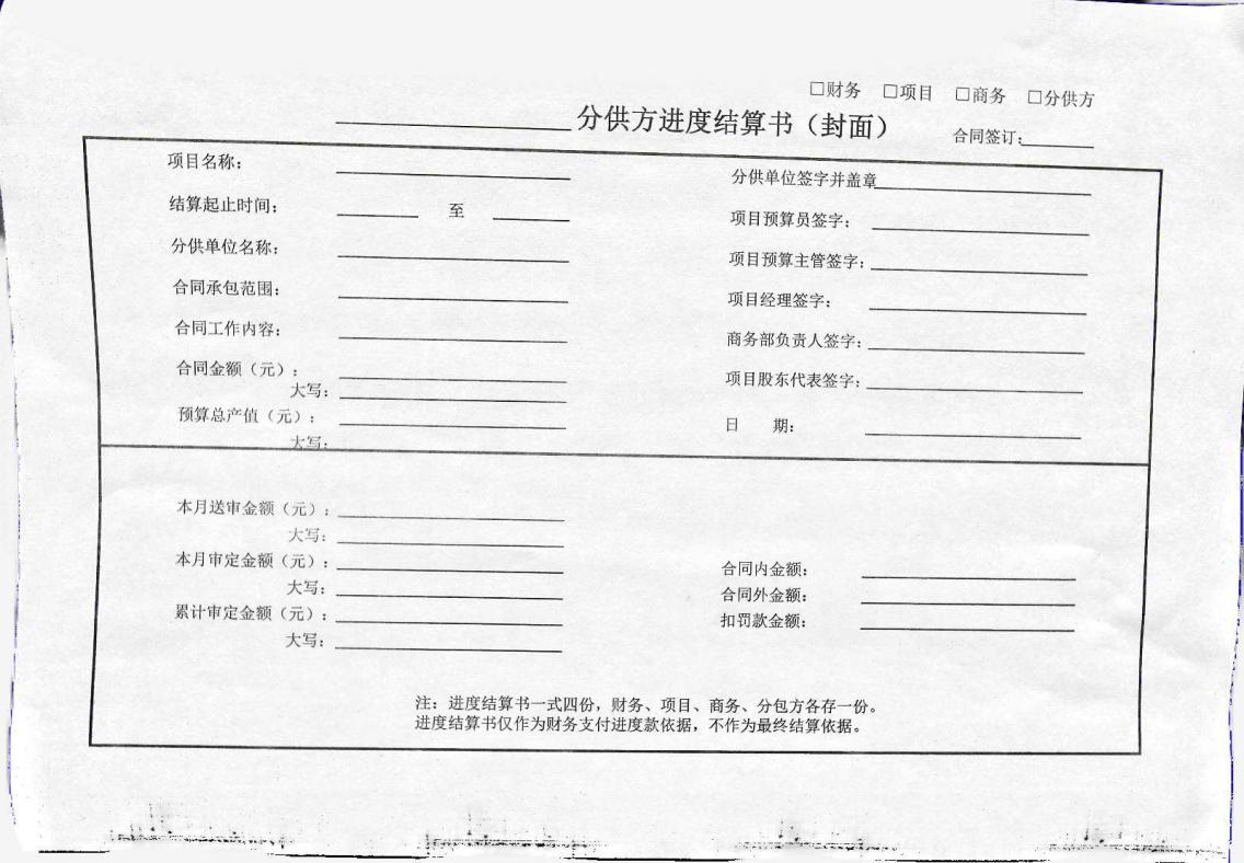 2、其次,項目商務(wù)部、材料部門每月20-25日根據(jù)本月現(xiàn)場完工進度及材料收料清單,對已簽訂合同的各分供方辦理進度結(jié)算,完成多少結(jié)算多少,項目經(jīng)理在結(jié)算書封面簽字確認后,交財務(wù)及時入賬。