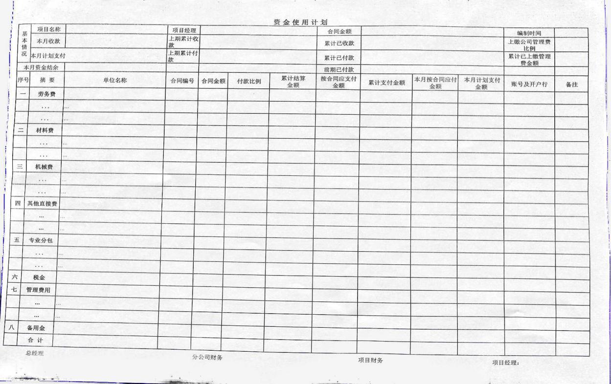 3、每月項目回款后,上報資金計劃,計劃的內(nèi)容應(yīng)覆蓋全,累計收款、累計資金結(jié)余、每家單位累計結(jié)算、累計付款、計劃支付等各項金額應(yīng)準確無誤。資金計劃經(jīng)區(qū)域公司財務(wù)部審核及總經(jīng)理批復(fù)后,單獨存檔,付款時逐筆核對單位及金額。