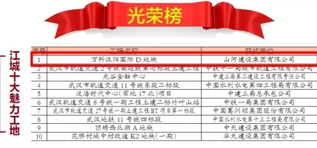 12月25日,2016年江城十大魅力工地十大智慧工地評選活動在楚天傳媒大廈舉行頒獎(jiǎng)典禮,由山河集團(tuán)承建的萬科漢陽國際D地塊項(xiàng)目位列十大魅力工地榜首,再獲殊榮。