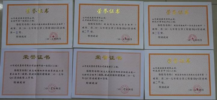 從4月底結(jié)束的“武漢地區(qū)建筑業(yè)2017年QC成果交流發(fā)布會”和 “2017年湖北省工程建設(shè)優(yōu)秀QC成果交流發(fā)布暨評審會”獲悉,山河建設(shè)集團(tuán)湖北公司分別榮獲武漢市優(yōu)秀QC成果二等獎1項,三等獎1項;榮獲湖北省優(yōu)秀QC成果一等獎1項,二等獎3項,三等獎3項。