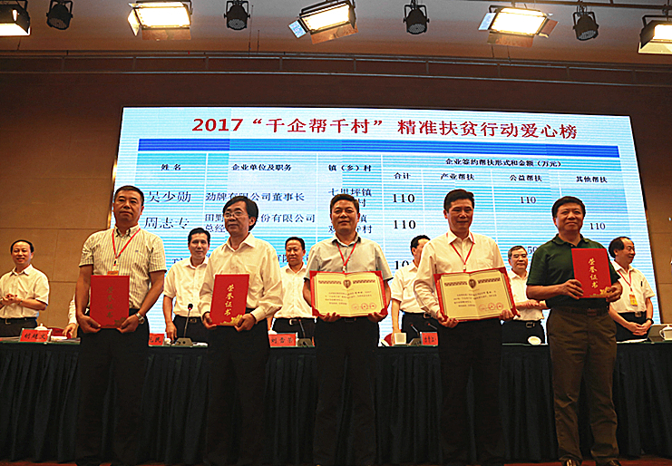 9月14日,湖北省“千企幫千村”精準(zhǔn)扶貧行動(dòng)現(xiàn)場(chǎng)推進(jìn)會(huì)在黃岡市英山縣舉行。湖北省委常委、省委統(tǒng)戰(zhàn)部部長(zhǎng)爾肯江•吐拉洪在會(huì)上講話。湖北省工商聯(lián)主席劉順妮通報(bào)了全省“千企幫千村”精準(zhǔn)扶貧行動(dòng)推進(jìn)情況,現(xiàn)場(chǎng)舉行了村企結(jié)對(duì)簽約儀式。會(huì)議由湖北省委統(tǒng)戰(zhàn)部副部長(zhǎng)、省工商聯(lián)黨組書(shū)記、常務(wù)副主席王兆民主持,黃岡市委書(shū)記劉雪榮致辭。