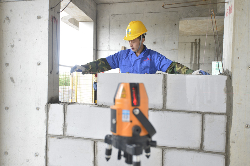 評(píng)委們拿著激光儀、靠尺等測(cè)量工具,在眾多選手的見證下,對(duì)砌體的水平度、垂直度、灰縫的考量,均精確到一個(gè)毫米為單位。對(duì)木工配模和模板安裝,除了現(xiàn)場(chǎng)技能考察外,還要考察比賽前的測(cè)量放線,模板定位控制,均以毫米為單位計(jì)算。