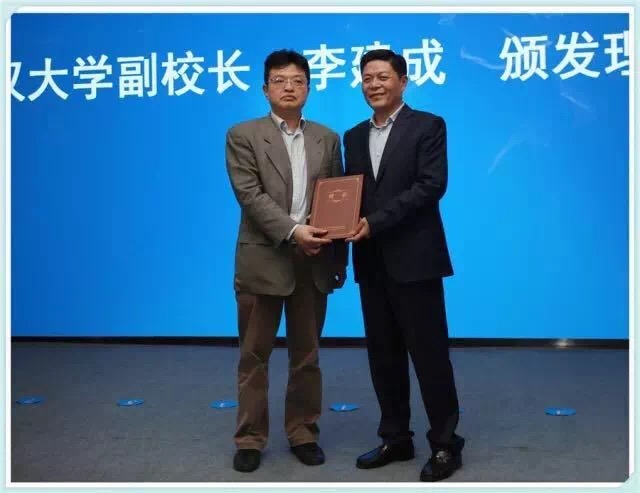 武漢大學(xué)黨委書記韓進、校長竇賢康、副校長李建成分別為董事長程理財頒發(fā)人才引進基金捐贈證書、武漢大學(xué)董事會董事聘書、人才引進基金理事會常務(wù)理事聘書。