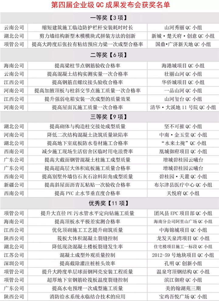 集團(tuán)各區(qū)域公司及項(xiàng)目管理公司的10名評(píng)委組成評(píng)審組,經(jīng)過會(huì)前嚴(yán)格的材料評(píng)審,共有29項(xiàng)QC成果資料提交,其中25個(gè)QC小組代表進(jìn)行現(xiàn)場發(fā)布。
