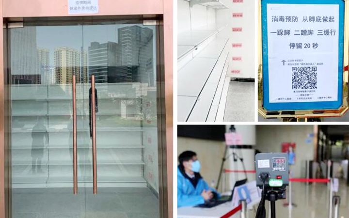 物業(yè)服務(wù)中心加強(qiáng)對(duì)進(jìn)出車(chē)輛及人員的管控,大廈地庫(kù)通往寫(xiě)字樓的進(jìn)出口暫時(shí)封閉,大堂出入口分開(kāi)設(shè)置。返崗人員均需提前進(jìn)行登記審核,手機(jī)出示準(zhǔn)許進(jìn)入的綠色登記碼,統(tǒng)一從大堂入口經(jīng)測(cè)溫、消毒后有序進(jìn)入。