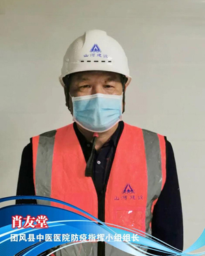 2月26日7時許,又一所團風(fēng)版“小湯山”——即將竣工的縣中醫(yī)醫(yī)院新院區(qū)應(yīng)急改造工程正在加緊施工,肖友堂被任命為項目防疫指揮小組組長,帶領(lǐng)一支近40人的突擊隊趕到現(xiàn)場增援。