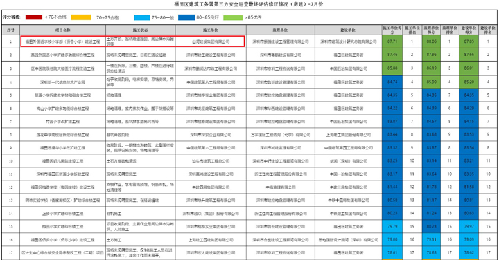 近日,在深圳市福田區(qū)建筑工務(wù)署組織的第三方安全巡查評估中,山河建設(shè)集團(tuán)深圳公司承建的福田區(qū)外國語學(xué)校小學(xué)部項目綜合評分名列第一。
