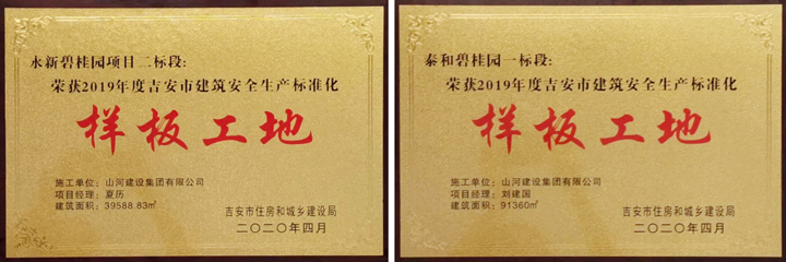 [江西公司]山河集團(tuán)江西公司兩項(xiàng)目獲評(píng)“2019年度吉安市建筑安全生產(chǎn)標(biāo)準(zhǔn)化樣板工地”