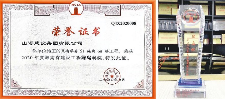 近日,山河建設集團海南公司承建的天街華府S1地塊6#樓工程榮獲2020年度海南省建設工程“綠島杯”獎,這是海南公司第七次攬獲海南省建設工程質(zhì)量最高榮譽。