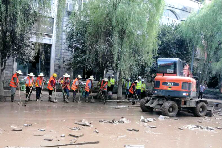 8月19日至20日,“長江2020年第5號洪水”“嘉陵江2020年第2號洪水”陸續(xù)通過重慶主城區(qū),巴南區(qū)魚洞江濱路、巴濱路、木洞、李家沱等低洼地區(qū)受災(zāi)嚴重。山河建設(shè)集團西南公司碧桂園巴南工貿(mào)園項目部主動請纓,組織管理人員及工人成立了一支道路清淤志愿隊,積極投入到救災(zāi)工作中。