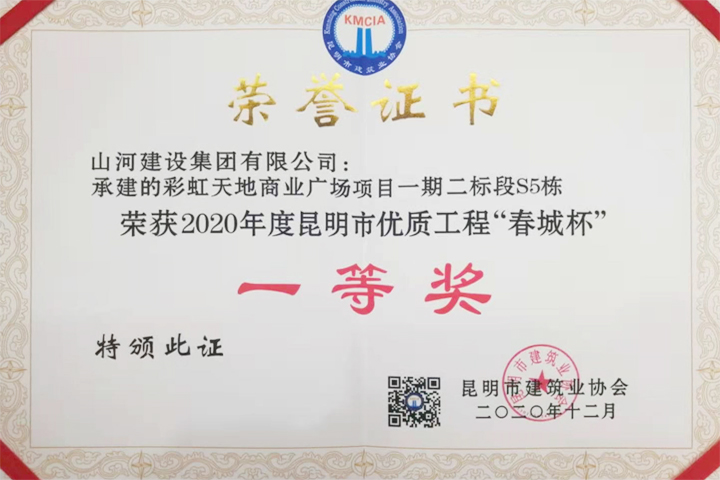 12月4日,昆明市建筑業(yè)協(xié)會(huì)第七屆四次理事會(huì)舉行。會(huì)上,公布了2020年度昆明市優(yōu)質(zhì)工程“春城杯”獲獎(jiǎng)名單,山河建設(shè)集團(tuán)云南(廣西)公司承建的遠(yuǎn)洋彩虹天地商業(yè)廣場(chǎng)項(xiàng)目一期二標(biāo)段S5棟喜獲“春城杯”一等獎(jiǎng)。