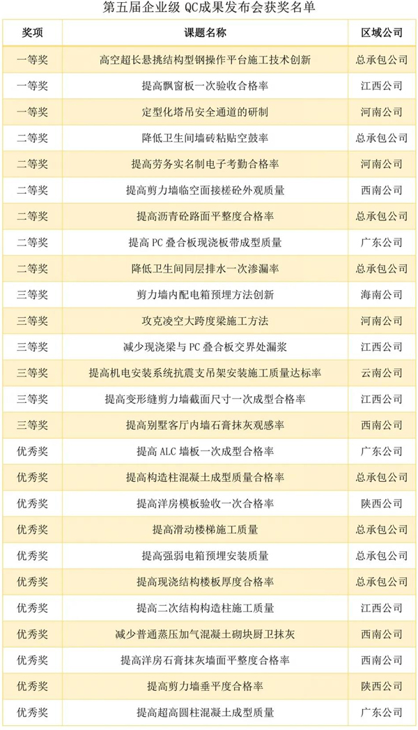 企業(yè)級 QC 成果:QC小組活動是集團(tuán)堅持不懈開展的一項重要活動,對提高質(zhì)量、降低成本、創(chuàng)造效益起到了積極的作用。企業(yè)級QC成果的發(fā)布,加大了優(yōu)秀成果的展示交流,促進(jìn)了創(chuàng)新成果的推廣應(yīng)用,推動集團(tuán)質(zhì)量管理工作始終向著健康方向發(fā)展。