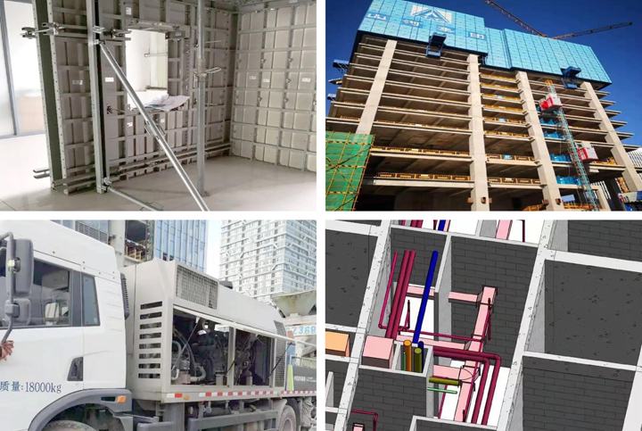 施工過程中,項目采用公司自主設(shè)計、生產(chǎn)的鋁合金模板,具有強度高、安全性好、優(yōu)質(zhì)環(huán)保的特點,支撐采用早拆原理,只用一套模板、三套支撐,實現(xiàn)了4天一層樓的澆筑速度;采用集成附著式升降腳手架技術(shù),米字型造型簡潔大方,有效降低施工噪音污染、粉塵污染,起到保護環(huán)境的作用。