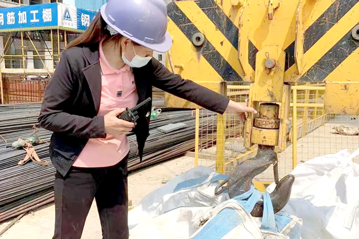 ▲居住項目(湖北交投產(chǎn)城華園二期)塔吊指揮員在吊裝前對起重設(shè)備吊具進(jìn)行自檢