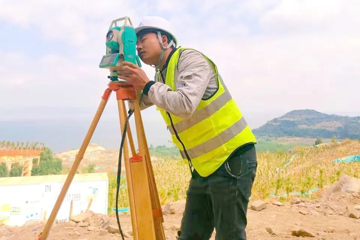 ▲昆明天池公館項目施工員在進(jìn)行測量