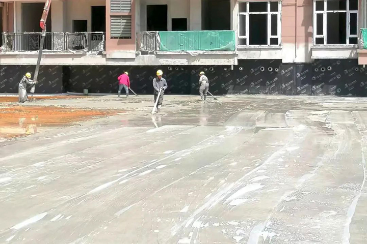 ▲信陽恒大御景灣項目工人進(jìn)行地下室頂板防水保護(hù)層施工