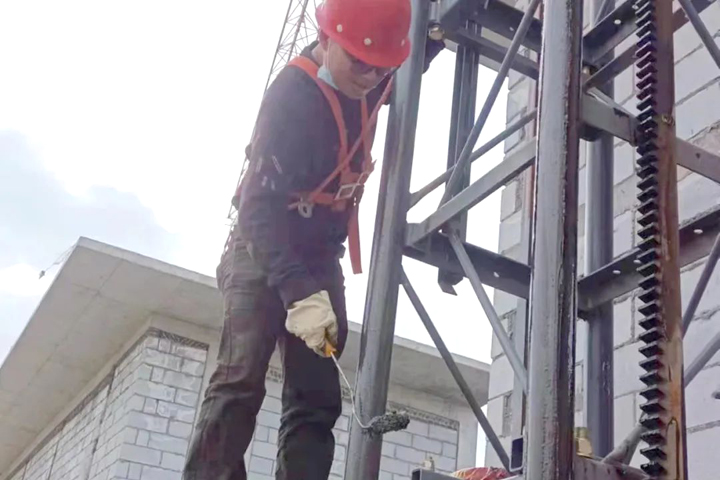 ▲寶雞吾悅廣場項目施工人員對電梯進(jìn)行維保月檢