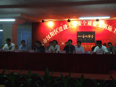 漢陽(yáng)區(qū)2008年度建設(shè)工程安全質(zhì)量文明施工現(xiàn)場(chǎng)觀摩會(huì)在我公司香榭琴臺(tái)項(xiàng)目經(jīng)理部召開