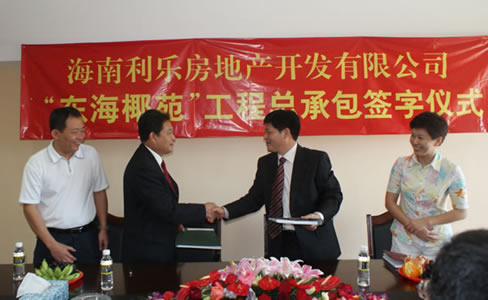 10月31日, 山河建設(shè)集團(tuán)有限公司和海南利樂房地產(chǎn)開發(fā)有限公司在??谑邪肷交▓@海天商務(wù)樓舉行“東海椰苑”項(xiàng)目簽字儀式。